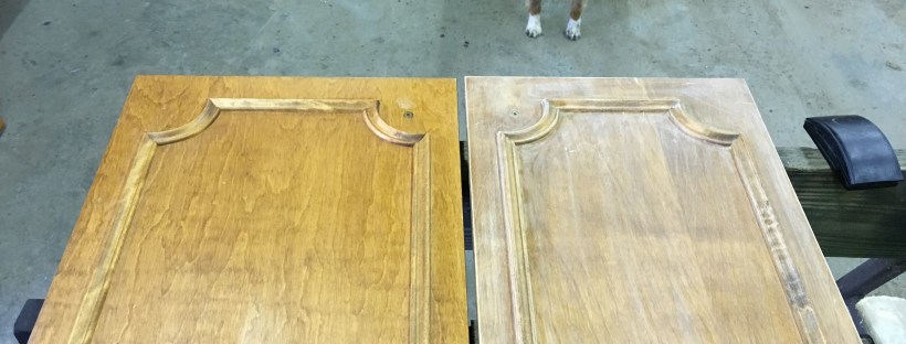 Discouraged, I left the doors laid out in my basement for weeks deliberating what to do (Re-sand and try PolyShades? Paint it? What color would I paint it? But I didn’t WANT painted cabinets! But dark painted cabinets would be cool…).